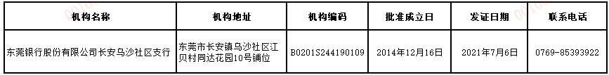 东莞银行股份有限公司长安乌沙社区支行经国家金融监督管理总局东莞监管分局批准,注销《中华人民共和国金融许可证》,现予公告: