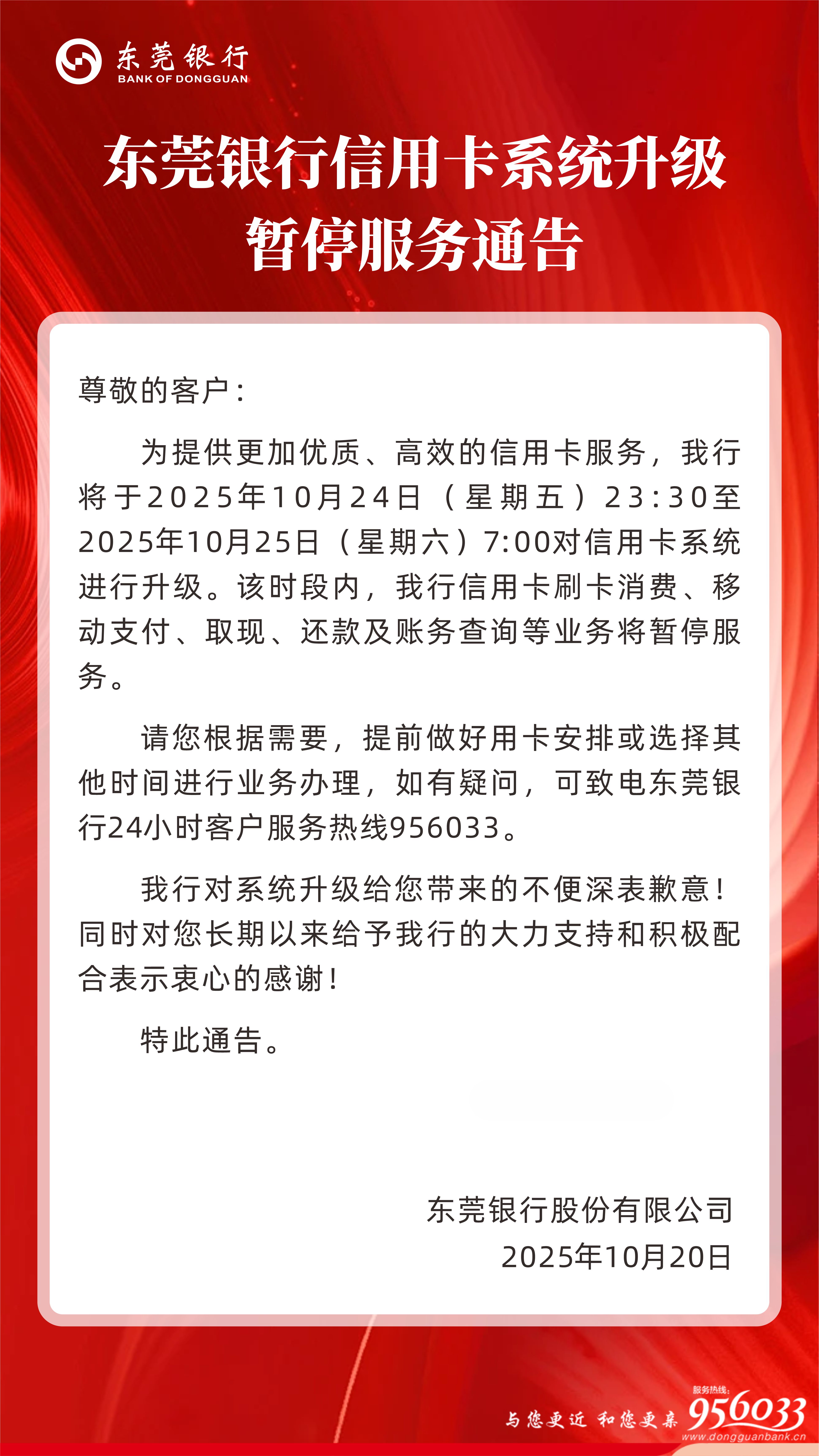 东莞银行信用卡系统升级暂停服务通告