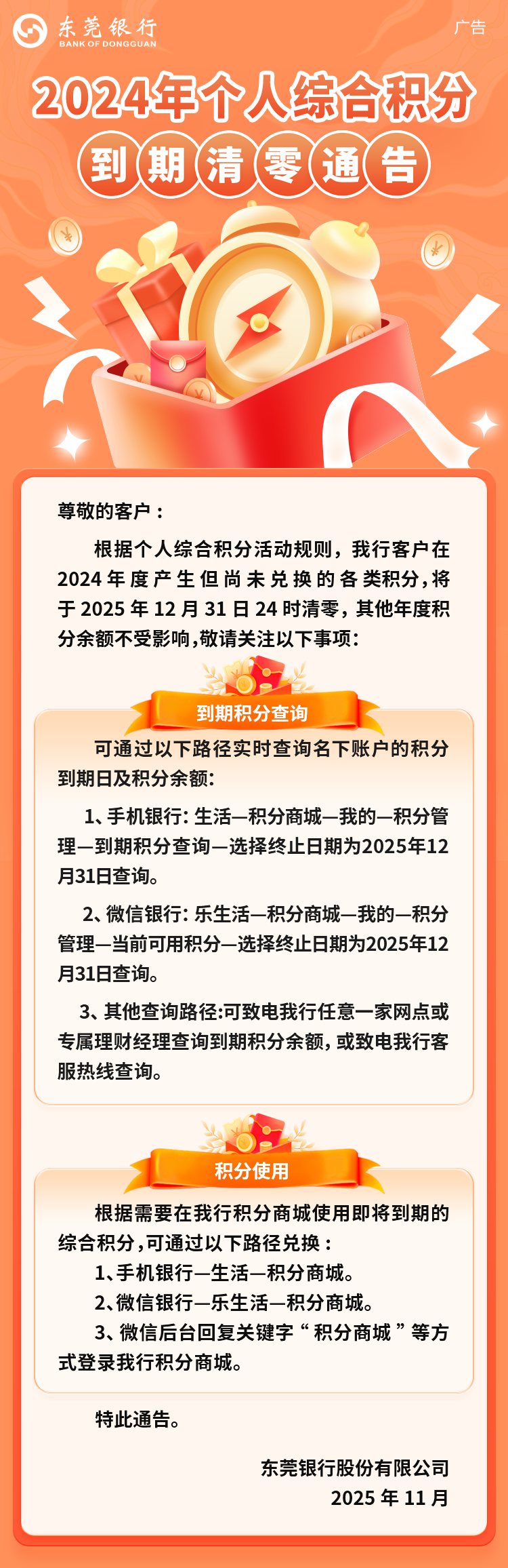 关于2024年个人综合积分到期清零的通告